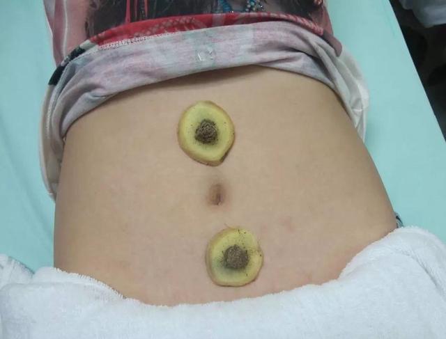 再者,就是隔姜灸,有人用姜,有人用蒜,還有用鹽等,把姜切成5~8毫米的薄片,扎滿小孔,之后把姜片放在肚子上,將小的艾絨或是艾柱放在姜上,點(diǎn)燃,如果覺(jué)得灼痛,就提起姜片或是更換艾柱再灸,灸過(guò)的部位會(huì)出現(xiàn)潮紅,姜片也會(huì)慢慢顏色變暗,沒(méi)有水分,這時(shí)候要及時(shí)更換姜片。