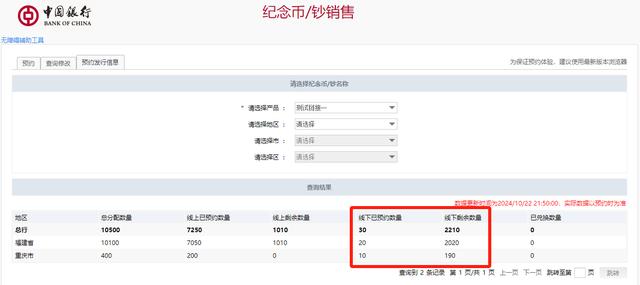 在此前的龍年幣鈔中,取消了線下預約的額度,不少藏友反饋,希望可以恢復線下預約。 從中行的試約頁面來看,各地都有不少的線下額度。也就是說,本次京劇旦角幣,部分地區可能會有線下額度,可以在次日去網點排隊預約。 第三次預約機會,是余量預約。 在紀念幣預約兌換結束后,會有部分紀念幣被放棄兌換。這些數量將集中組織進行余量預約。 最后要提醒大家的是,京劇幣發行在即,預計最晚在11月進行預約。百科網會時刻留意,及時提醒大家。 |