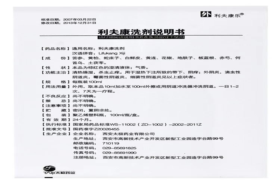 1、利夫康洗劑每一個的容量為100毫升,是外用藥,用法是每一天1到2次,一個星期是一個療程。