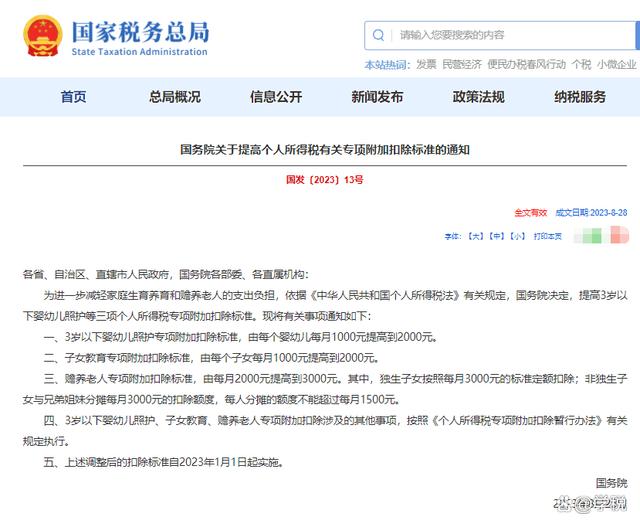 個(gè)稅終于迎來(lái)重大利好,國(guó)發(fā)〔2023〕13號(hào)明確:為進(jìn)一步減輕大家生育養(yǎng)育和贍養(yǎng)老人的負(fù)擔(dān),大幅提高3歲以下嬰幼兒照護(hù)、子女教育和贍養(yǎng)老人三項(xiàng)專項(xiàng)扣除的標(biāo)準(zhǔn)。具體情況,一起來(lái)看看吧!