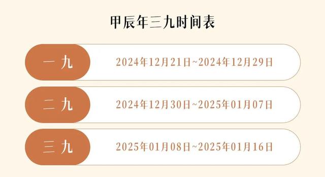 今年的三九天時間表為: