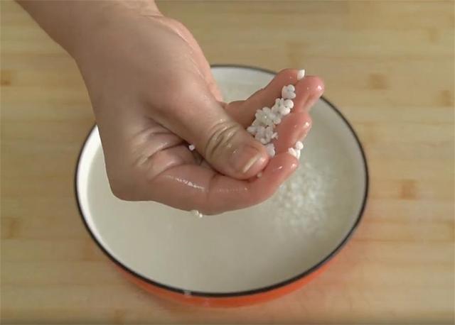 1.大家好,今天用糯米做個好吃的,口感香甜,做法簡單,大人小孩都喜歡。糯米洗凈以后提前浸泡一個晚上,泡好的糯米輕輕就能碾碎。
