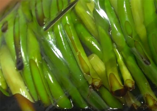 4.現(xiàn)在已經(jīng)過了三個多小時了,這就是已經(jīng)腌制好的蒜苔了。