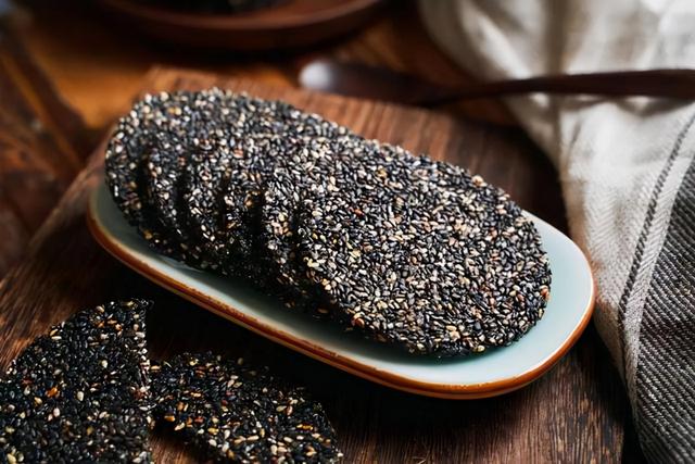 黑芝麻蜂蜜餅 自古以來就被視為保養的佳品,古代養生學家陶弘景評價黑芝麻為“八谷之中,唯此為良”。而《神農本草經》中介紹黑芝麻,也談到其能“補五內,益氣力,長肌肉,填腦髓。久服,輕身不老”。因此,黑芝麻也是我們的“平民補品”。 分享一個黑芝麻的噴香吃法,黑芝麻餅。 米飯1小碗、黑芝麻、香油、鹽、大米粉適量。黑芝麻先炒一下,然后和米飯、香油、鹽、大米粉拌勻;拌好的米飯倒入保鮮袋用搟面杖搟平整,然后切成方形的小塊。