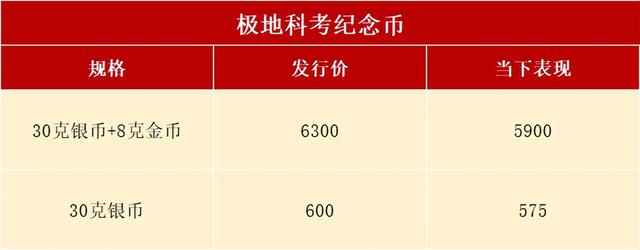 比如紙幣千年紀念幣,就兼具題材和花活。但極地科考紀念幣,不僅題材較為冷門,形制上也沒有特殊之處。 因此這枚紀念幣在發行之前,百科網就提醒大家,最好是不要參與預約。 果不其然,在預約結束后沒幾天,2枚紀念幣都已經比發行價要低了。