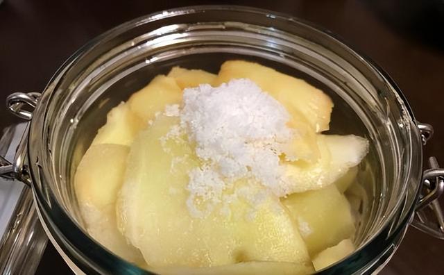 1.選用嫩一點(diǎn)的姜切薄片,撒上適量的鹽腌制一晚。