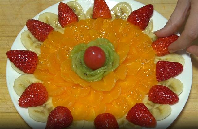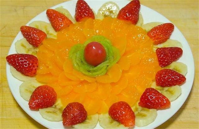 6.這樣一個用5種水果擺的果盤就搞定了,是不是特別簡單,看著也很好看吧,當然你也可以換成自己喜歡吃的水果,如果你有更好的擺盤創意,記得在評論下方交作業哦。 |