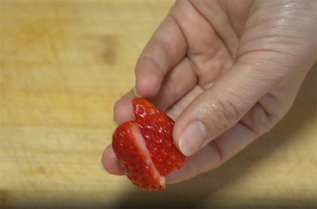 4.洗干凈的幾個草莓對半切開。