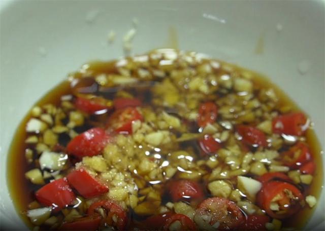 5.這個(gè)時(shí)間再來(lái)準(zhǔn)備一份料汁,小米椒切成圈,大蒜切成蒜末,全部裝在一個(gè)碗里,加入兩勺生抽,兩勺香醋,一勺蒸魚(yú)豉油,一點(diǎn)點(diǎn)鹽,幾滴香油增香,能吃辣的可以放點(diǎn)辣椒油,攪拌均勻,先放一旁備用。