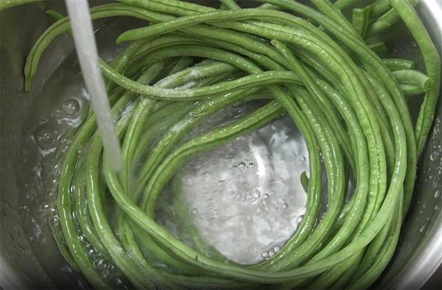 1.今天去市場(chǎng)買了兩塊錢的長(zhǎng)豆角,用它做個(gè)好吃的,不用炒也不需要燉,原汁原味。先把豆角擇一下,放在盤里加一勺鹽,一勺小蘇打,加入足量的清水浸泡十分鐘,這樣能夠有效的去除豆角上殘留的農(nóng)藥。