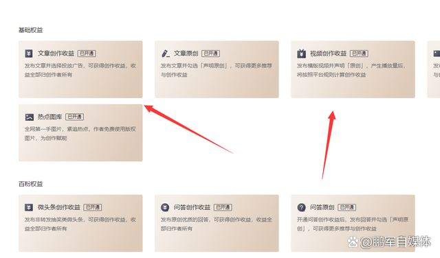 二、開(kāi)通創(chuàng)作收益權(quán)益因?yàn)槊總€(gè)平臺(tái)的要求規(guī)則不一樣,但是你都需要去開(kāi)通這個(gè)權(quán)限。有的平臺(tái)是你一注冊(cè),就可以發(fā)作品拿錢(qián),但是也有平臺(tái)需要完成一些任務(wù)。 那么任務(wù)怎么去完成,就需要你自己認(rèn)真看了。如下圖所示,你只需要將創(chuàng)作收益權(quán)限開(kāi)通就好。