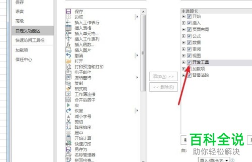 3. 如果我們沒有找到“開發工具”,就打開選項窗口后,點擊左側列的“自定義功能區”,然后再勾選“開發工具”選項即可。