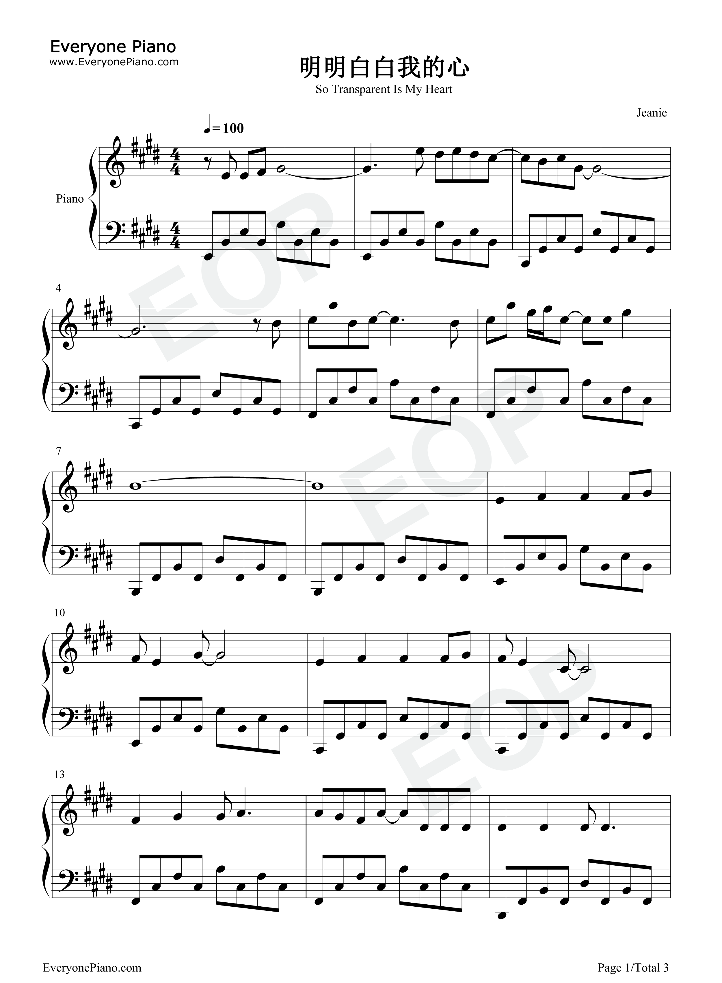 經典歌曲《明明白白我的心》獨具風韻,婉轉悠揚。在上世紀九十年代特別風行,幾乎是卡拉OK的必唱曲目。歌曲反映了紅男綠女的真實情感,唱出了壓在心靈深處的情感獨白。 此曲由李宗盛作詞作曲,成龍和陳淑樺演唱,發行于1991年。然而15年后由國內著名音樂制作人趙佳霖和成龍大哥共同改編,跟隨成龍新電影《絕地逃亡》重燃歌壇。重編后的《明明白白我的心2016》動感十足,節奏明快,洗腦程度堪比“小蘋果”。歌曲大膽地將大調改為小調,雖然在旋律上保持了原曲的特點,但是也進行了大范圍的重新創作,并混搭有舞曲、Tango、Rap、民樂、京劇等多種音樂元素,成龍大哥前后15年的演繹也因此大不相同,“龍女郎”魏允熙的甜嗓、成龍大哥Rap首秀讓人耳目一新。成龍大哥標志性的嗓音加上輕快的舞曲節奏,讓人不自覺的開心起來。多元化的演唱、明快的節奏構成一曲朗朗上口又有趣味的歌曲。 明明白白我的心雙手簡譜比較簡單,學完《黃金VIP版魔鬼訓練營》的學員可以嘗試彈奏,錄制視頻贏金幣哦! ? 明明白白我的心歌詞: ? 女:明明白白我的心 渴望一份真感情 曾經為愛傷透了心 為什么甜蜜的夢容易醒 男:你有一雙溫柔的眼晴 你有善解人意的心靈 如果你愿意 請讓我靠(jìn) 我想你會明白我的心 女:星光燦爛風兒輕 最是寂寞女兒心 告別舊日戀情 把那創傷撫平 不再流淚到天明 男:我明明白白你的心 渴望一份真感情 女:我曾經為愛傷透了心 為什么甜蜜的夢容易醒 明明白白我的心 渴望一份真感情 曾經為愛傷透了心 為什么甜蜜的夢容易醒 男:你有一雙溫柔的眼晴 你有善解人意的心靈 如果你愿意 請讓我靠(jìn) 你的心事有我愿意聽 女:星光燦爛風兒輕 最是寂寞女兒心 告別舊日戀情 把那創傷撫平 不再流淚到天明 男:我明明白白你的心 渴望一份真感情 女:我曾經為愛傷透了心 為什么甜蜜的夢容易醒 明明白白我的心 渴望一份真感情 曾經為愛傷透了心 為什么甜蜜的夢容易醒 男:你有一雙溫柔的眼晴 你有善解人意的心靈 如果你愿意 請讓我靠(jìn) 你的心事有我愿意聽 女:星光燦爛風兒輕 最是寂寞女兒心 告別舊日戀情 把那創傷撫平 不再流淚到天明 |