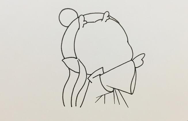 2、在袖口畫出敖丙的手,往下畫出敖丙衣服的另一部分。畫衣服的時(shí)候要畫出敖丙衣服上的褶皺。這樣敖丙的下半身就畫好了。