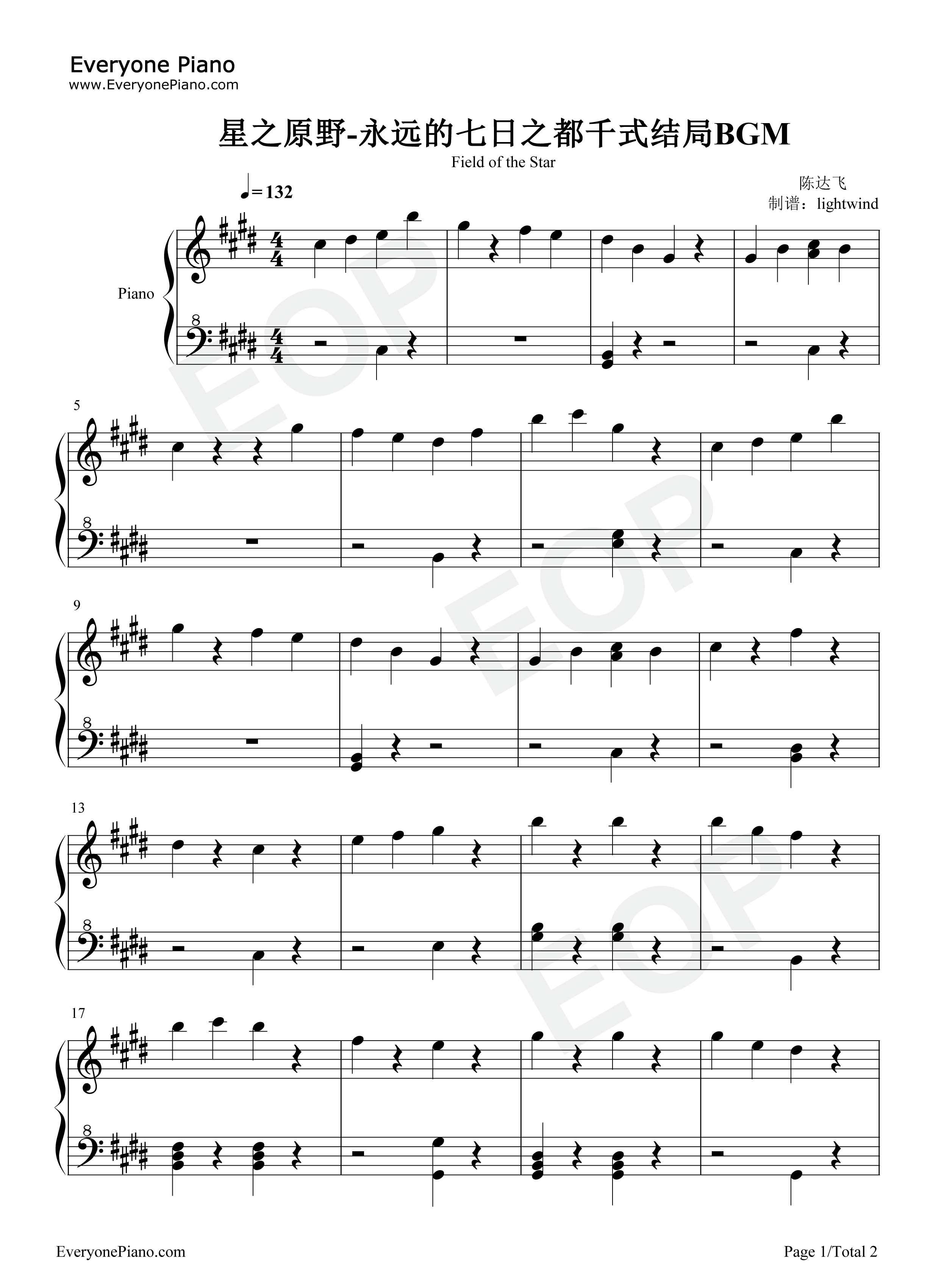 當前位置:首頁>娛樂>星之原野鋼琴譜-陳達飛