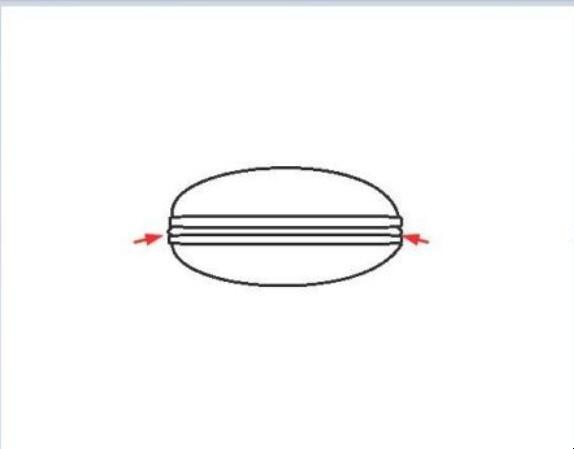 5、在兩個半個的馬卡龍直接,畫出夾心形狀。
