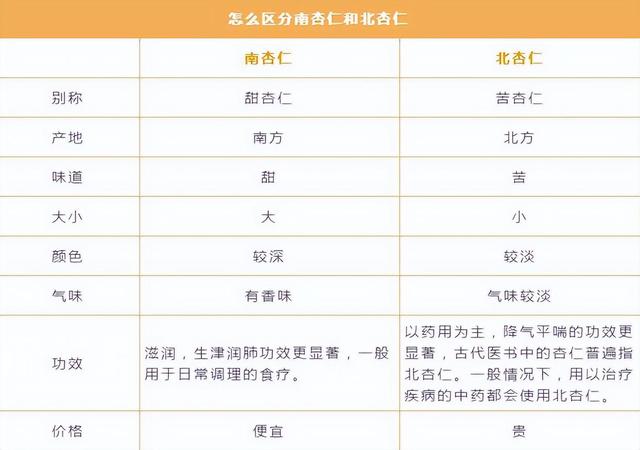 注意上面我們做食物用的都是甜杏仁,也就是南杏仁哦,苦杏仁有微毒,自己不要亂吃!同時,孕婦,嬰幼兒最好不要吃杏仁。 南杏仁味道偏甜,更具有滋養,生津的作用,從外觀看,甜杏仁的個頭較大,苦杏仁比較小,而且南杏仁的基底部圓圓的,左右對稱,苦杏仁則是不對稱的。