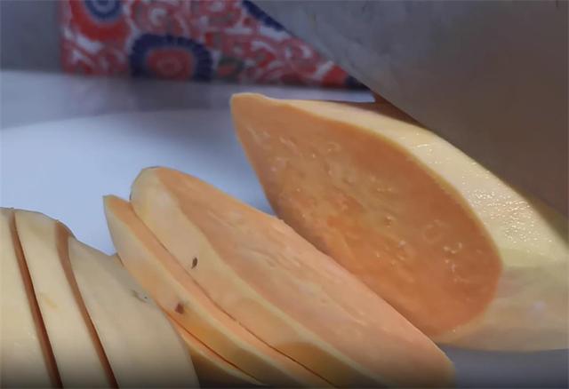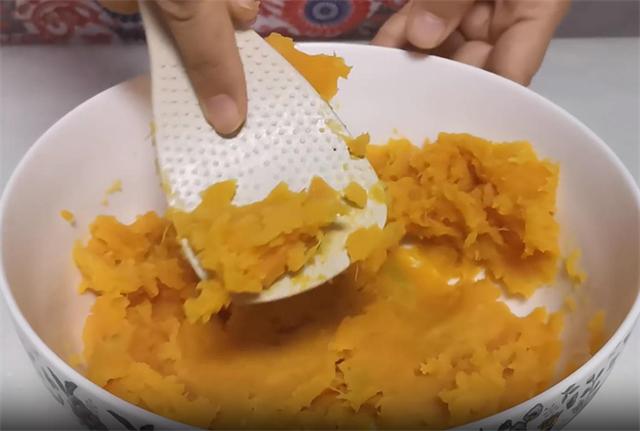 3.紅薯蒸好之后,我們取出,我們把紅薯搗成泥。