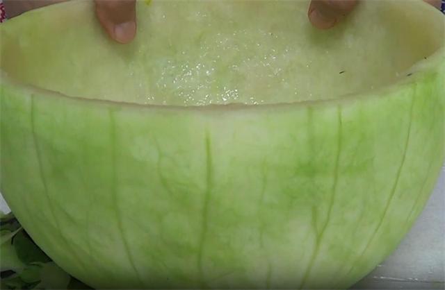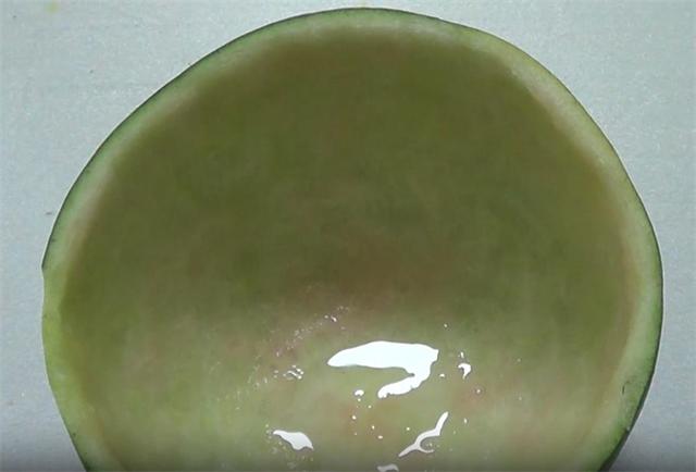 1.相信到了夏天,朋友們肯定每天都是吃西瓜的,但是你們有沒有吃西瓜皮呢?今天我們就來做一個涼拌西瓜皮。這是我提前處理好的一個西瓜皮,做這個的時候,西瓜瓤一定要處理的盡量干凈一些。