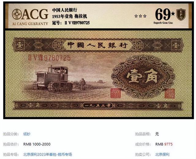 很多人小時(shí)候使用過(guò)的黃一角,如今已經(jīng)成為眾多藏友爭(zhēng)相收藏的對(duì)象,在今年下半年的保利拍賣(mài)會(huì)中,就有一張拍出了9775,這樣的一角紙幣不知道你家里還留著沒(méi),大家注意了我國(guó)大部分的一角紙幣都是黃色的。