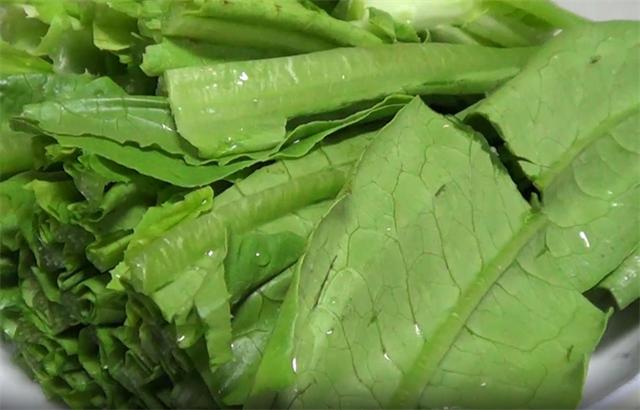 1.油麥菜洗凈后切短一點的段狀,切好后裝盤備用。