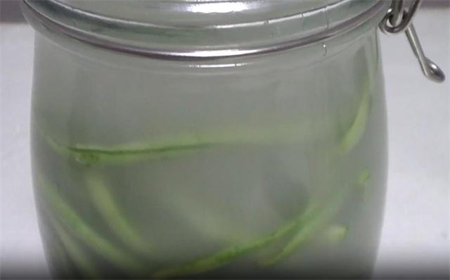 3.再加入淘米水,倒入的量沒過豇豆,瓶口留1至2厘米就可以了。