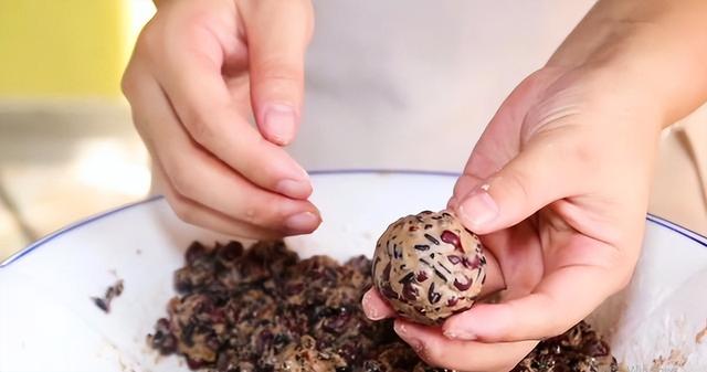 全谷物:眾多研究表明,全谷物中含有膳食纖維,維生素E等成分,對我們身體健康有很好的保護作用,而且營養價值遠高于精加工只保留了碳水和部分蛋白質的粳米細面。《中國居民膳食指南(2022)》建議正常成年人每人每天攝入全谷物和雜豆類50-150克。很多人認為全谷物就是粗糧,其實是不準確的哦。 俗話說,寧可一日無肉,不可一日無豆,在我們日常飲食中,除了蔬菜、水果、主食等這些食材,豆類其實是我們經常忽視的一種食材。 除了這三種基礎的豆類,還可以吃一些雜豆,比如紅豆,綠豆,鷹嘴豆等等,相比于精米白面,雜豆和全谷物都保留著胚芽、谷皮/種皮等營養豐富的部分,在提供碳水化物的同時帶來更多膳食纖維、B族維生素、鉀、鎂等礦物質,餐后血糖反應比精米白面低不少。 紅豆清熱解毒,健脾益胃,通氣除煩,李時珍稱紅豆為“心之谷”。 準備紅豆、黑米、紅棗、葡萄干、面粉、紅糖、純牛奶、糯米粉、土豆淀粉。 把紅棗,葡萄干洗凈,切碎,等紅豆黑米蒸熟后,放入碗中晾涼,碗中加適量的紅糖,用筷子把碗中的食材攪拌均勻,使紅糖能融化開,把葡萄干和紅棗一起加進來攪拌,再加入適量糯米粉攪拌均勻,等到所有食材都裹上一層糯米粉后,再加適量純牛奶,繼續攪拌至食材抱團即可。