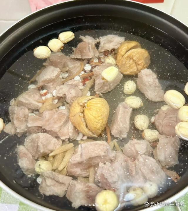 時間快速流逝,到了秋季以后,天氣變得越來越涼快,一陣秋分之后,天氣變得涼爽起來,外面泛黃的葉片都凋零,晝夜溫差越來越大,空氣濕度降低,讓人特別舒服,白天就會犯困,晚上會容易失眠。秋季是情緒波動的時候,由于白天時間縮短,人體的新陳代謝降低,情緒會非常不安,加上生活壓力非常大,很多年輕人晚上都會睡不著。面對睡眠質量差,廣東人研究出很多食療方,比藥補更加管用,搭配規律的作息,加強運動鍛煉,能夠維持身體平衡,增強免疫力,讓睡眠越來越好。今天推薦南方人愛喝的一款湯品——太子參麥冬芡實蓮子瘦肉湯,簡單易學,營養易消化,對睡眠質量有提升的作用,趕快學一學吧。“失眠喝一湯,晚上睡得香”,秋季多喝這湯,養心安神,增強免疫。  【太子參麥冬芡實蓮子瘦肉湯的制作步驟】 食材清單:選購兩個無花果(無花果是新鮮無花果曬干而成,更加容易儲存,泡發后可以用來煲湯),太子參12克左右,麥冬15克左右,芡實一小把,優質干蓮子30克左右,溫水少許,純凈水幾大碗,老姜12克左右,半根大蔥,新鮮精瘦肉350克(精瘦肉是純瘦肉,是沒有脂肪的豬肉,有條件可以用牛肉或羊肉替代,用來燉湯特別合適,湯品非常鮮美),一丟丟胡椒粉,食鹽若干,其他。 詳細制作過程:1:提前挑選好新鮮瘦肉,芡實,蓮子和太子參等食材,先把太子參和麥冬過一遍清水,洗凈控干水分,放在碗中備用。2:大蔥去皮切成小段,生姜洗凈去皮切片,芡實用冷水泡幾分鐘,干蓮子全部碗中,加上少許溫水,加上半勺食用堿,把蓮子提前泡幾個小時,泡軟后取出蓮子心,切記不能直接丟入鍋中燉湯。3:無花果用溫水泡發,把瘦肉徹底洗凈,去掉筋膜和一些肥肉,切成麻將大小的塊狀,不能切太小,容易縮小。