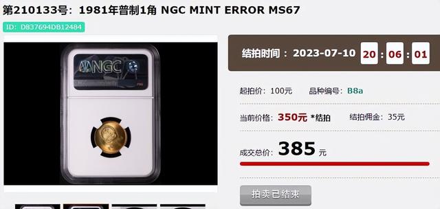 如果背逆度數比較小的話那就沒漲那么多了,比如在同一場拍賣會中,一枚1981年的背逆一角,只背逆了大概15度,就只拍出了385,當然相比普通的硬幣來說,它也是更加的珍貴,你家里能找到這種背逆幣嗎?(www.ws46.com) |
