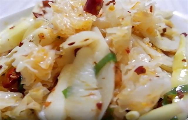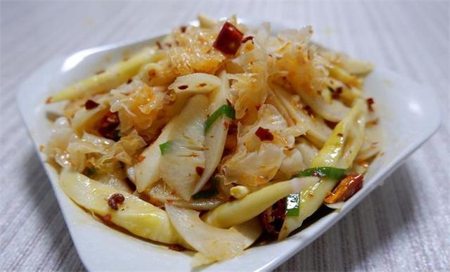 準備食材: 銀耳、蓮藕、竹筍、蔥花、花椒、干辣椒、食用油、白糖、白醋、醬油、辣椒油、麻油、芥末 具體做法: