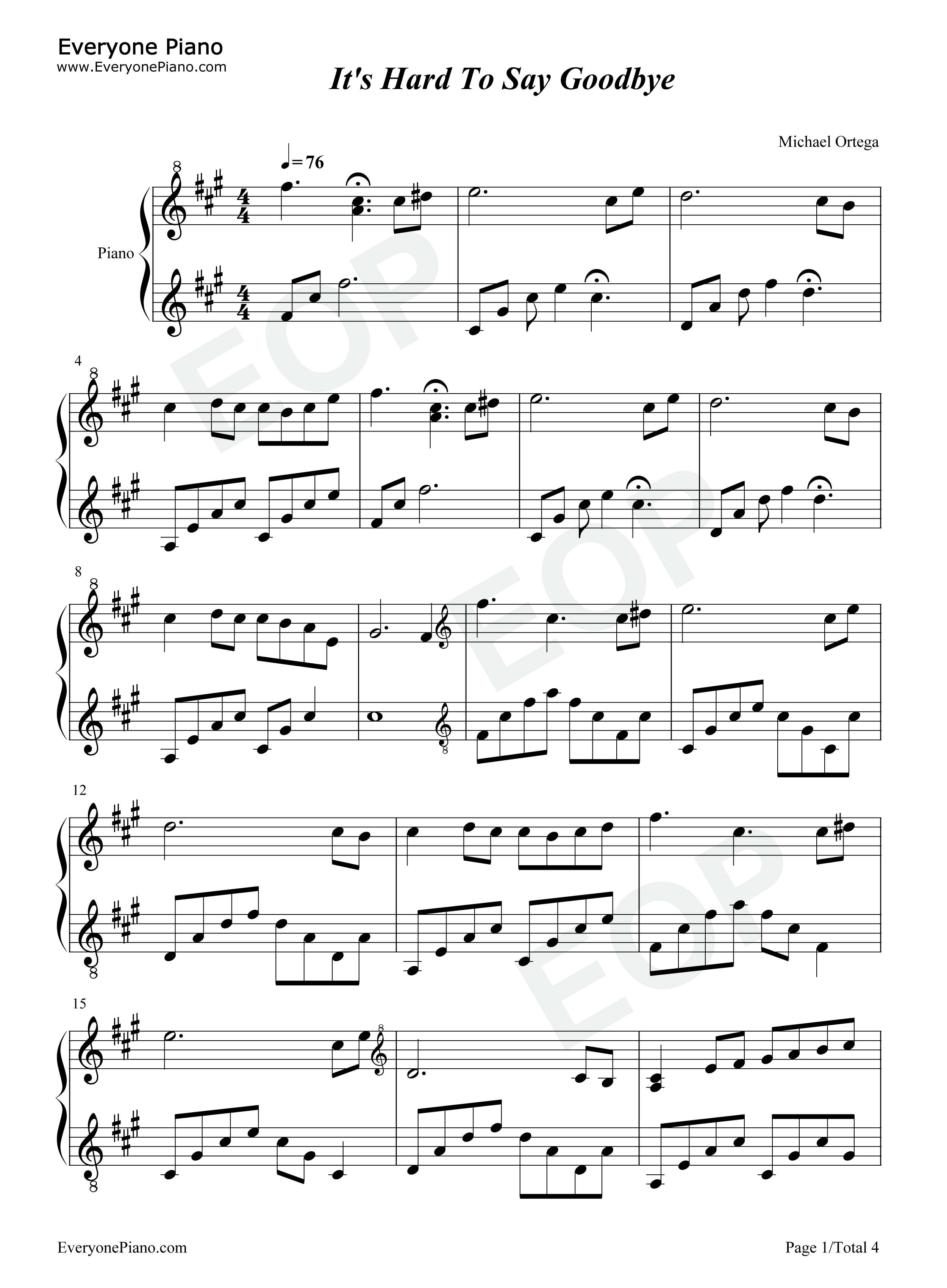 《Its Hard To Say Goodbye》是音樂人Michael Ortega的一首優美的鋼琴曲。此曲悲傷而治愈。 正如曲名,“再見”一詞很難說出口,不管以后會不會再次見面,說出這個詞就意味著離別,心里也不免會傷感起來。每當我聽到或演奏這首歌時,它都會以某種方式安撫我。有一刻,我覺得我可以從繁忙的日常生活中休息一下,平靜而怡然自得。 |