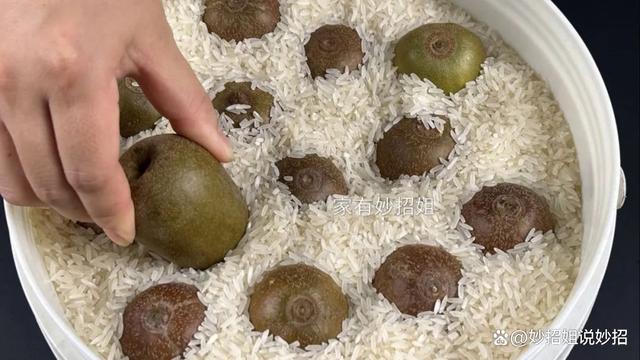 二:大米法。 除了水果可以幫助獼猴桃快速催熟外,家里常備的主食——大米,也可以用來催熟獼猴桃。先將獼猴桃簡單的擦拭一下,把表面的一些絨毛雜質之類的擦拭干凈后,直接埋在大米中就可以了。大米是處于一個恒溫狀態的,而且大米中有很多的粉末,這樣可以使獼猴桃處在一個密閉的空間,獼猴桃是會自行釋放催熟的乙烯氣體的,在這個密閉的空間中,就會形成一個高濃度的乙烯環境,從而也就能加速獼猴桃的成熟了,大概2~3天獼猴桃就催熟變軟可以吃了。