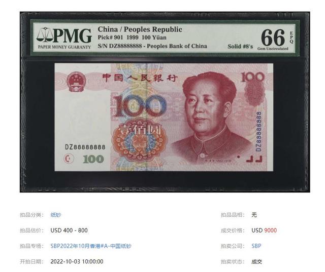 在SBP的拍賣會中一張1999年的100元紙幣,拍出了9000美元,差不多就是65000,這種年份的100元紙幣,如今的確是越來越少見了很多人也開始默默收藏,但達(dá)到60000多的程度還是讓人意想不到的。