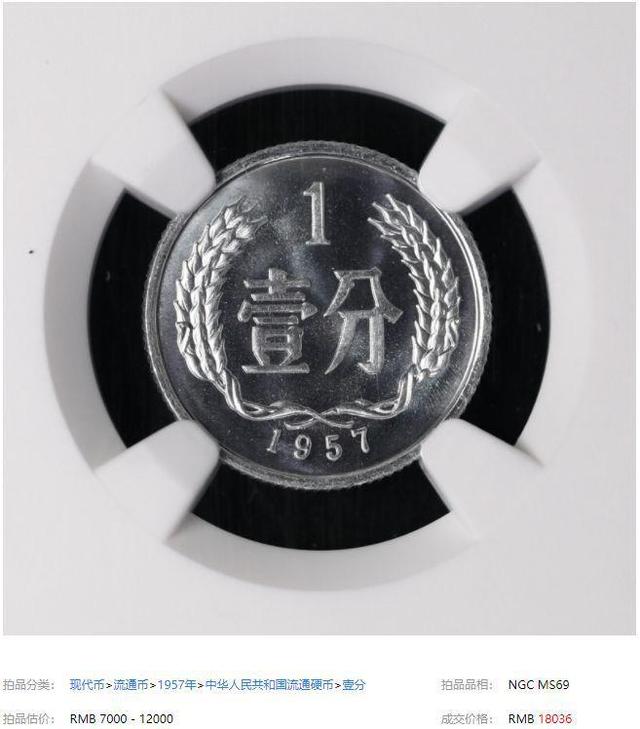 單就拍出了18000多,所以它其實品相夠好的話還是能上萬的,你家里有這種年份的一分硬幣嗎? |