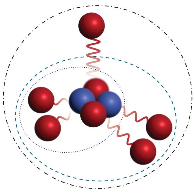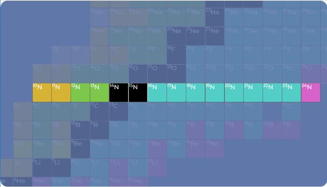 核圖上還有一些邊界,它們表示了原子核存在的極限。也就是說,如果原子核超過了這些邊界,它就不再是一個原子核,而是一些散開的粒子。這些邊界叫做核存在極限,它們有四個方向,分別是質子極限,中子極限,質子-中子對稱極限,質子-中子反對稱極限。 質子極限表示了原子核的最大原子序數,也就是最多可以有多少個質子,中子極限表示了原子核的最大中子數,也就是最多可以有多少個中子,質子-中子對稱極限表示了原子核的最大質量數,也就是最多可以有多少個質子和中子的總和,質子-中子反對稱極限表示了原子核的最小質量數,也就是最少可以有多少個質子和中子的總和。這些極限都是理論上的,實際上,我們還沒有觀測到所有的原子核,所以我們不知道這些極限的確切位置,只能用一些模型來估計。 氮-9,它是一種非常罕見和奇特的原子核,它的原子序數是7,質量數是9,也就是說,它有7個質子和2個中子。你可能會想,這有什么奇怪的,不就是氮的一個同位素嗎?是的,但是你要知道,氮-9是一個非常不穩定的原子核,它的質子和中子的比例遠遠偏離了貝塔穩定線,它的質子占了原子核的一半以上,它的中子太少了,核力不足以把它們粘在一起,所以它會立刻衰變,釋放出一些粒子,變成其他的原子核。 這種衰變叫做質子發射,也就是說,原子核會發射出一個或多個質子,減少自己的原子序數,增加自己的穩定性。質子發射是一種很少見的衰變方式,只有一些非常質子富的原子核才會發生。這些原子核都是在質子極限附近的,它們的原子序數接近或等于它們的質量數,它們的質子和中子的比例接近或等于1。 但是,氮-9不同,它的質子和中子的比例是3.5,它的質子占了原子核的77%,它的原子序數遠遠大于它的質量數的一半,它是一個非常質子富的原子核,它不僅在質子極限附近,而且在質子-中子反對稱極限附近,所以它是一個非常極端的原子核。它的存在時間非常短暫,當它衰變時會發射出五個質子,變成氦-4。氮-9是第一個已知的發射五個質子的原子核,它是一個五質子發射體,是一個非常特殊的原子核,可以幫助我們了解原子核的結構和性質,以及核存在極限的位置。