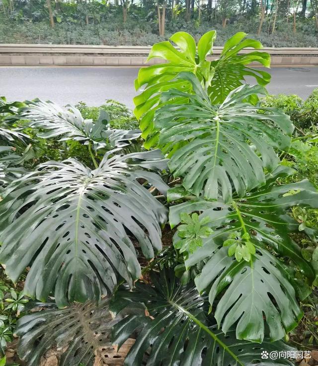 氣溫越高,龜背竹長的越大,廣東路邊的龜背竹,簡直太夸張了 龜背竹是非常典型的熱帶植物,在我國的南方地區比較常見,像廣東,廣西,云南,海南,這些地方是經常能見到的,比如說廣東省,廣東省的綠化帶里,就會種植大量的龜背竹,因為廣東的氣候條件適合龜背竹的生長,到了冬天,室外的龜背竹也是凍不死的。