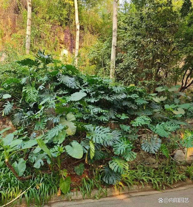 廣東路邊生長的龜背竹其實也是當地的綠化部門進行種植的,并不是在自然環境下野外生長的,龜背竹在幼苗期間也都是經過人為培育,然后種植在綠化帶里,加上得天獨厚的地理優勢,龜背竹開始繁衍生長,在生長的同時,底部的氣生根能繁殖出大量的幼苗,因而綠化帶里也都長滿了龜背竹。