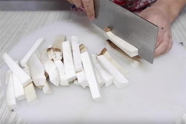 1.今天咱們做好吃的椒鹽杏鮑菇,外酥里嫩,咸香好吃。準備一個杏鮑菇洗凈,切成粗條。
