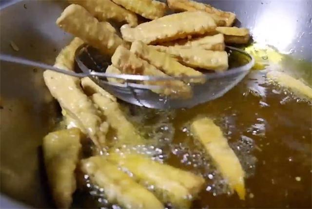 4.然后再轉大火復炸,這次把杏鮑菇外皮炸酥炸至金黃。