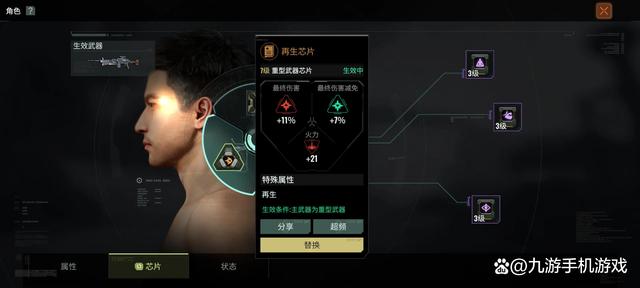 在這個游戲里面,機槍芯片就是用來將角色戰斗力提升的一個重要的道具了,芯片有等級的區分,最低是藍色,然后是紫色,下面是綠色,最高的是黃色,芯片也被分為了很多類型的,有中型武器芯片,自動武器芯片,還有半自動武器芯片。