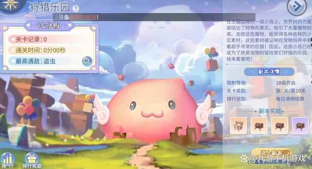 1、開啟條件 當你順利地將自己的等級提升至38級的時候,就可以成功地解鎖一個叫做狩獵樂園的副本,這個副本里充斥著各種各樣的怪物,成功擊敗后就能獲得對應的素材,這些東西可以用于培養寵物。
