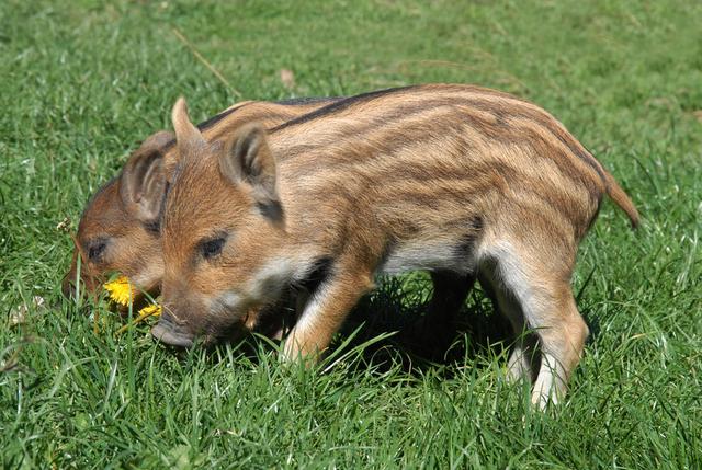 二 購買野豬 我們人工飼養野豬的時候,一開始可以先買小野豬進行馴養,要是一上來就買個大野豬,馴服難度比較大,而小野豬就相對比較容易了。 我們購買的小野豬體重最好在10~22公斤左右,因為這種野豬月齡不大,容易馴化,可塑性極強,然后按照家豬20%、野豬80%的比例進行混養,也就是說家豬和野豬一起飼養的占比是2:8。