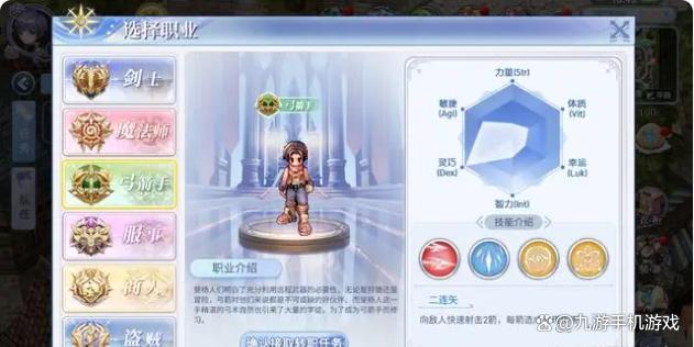 職業推薦三:弓箭手 也是轉職的職業之一,如果是對比劍士職業的話,他們看起來就相對比較脆了,血量是比較薄弱的角色,比較擅長遠距離攻擊,但是他們卻有著很高的命中率,同時角色本身非常的靈活,在短時間之內還對自己具有增益的效果,而且爆發能力是很強的,所以該職業的輸出上限非常的高,尤其是靈活性這一方面,如果大家操作得當,走位比較靈巧的話,那么在戰斗當中是可以有很大的優勢的,如果對自己的操作很自信,或者說想要鍛煉這方面能力的話,那么這個職業就很合適去練習了。