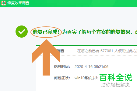 5. 第五步,來到下圖所示的頁面后,可以看到修復已完成的提示信息,接著就可以看到成功除去快捷方式的小箭頭圖標了。