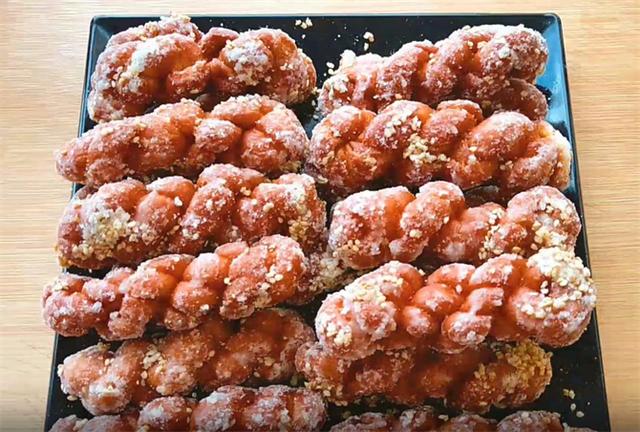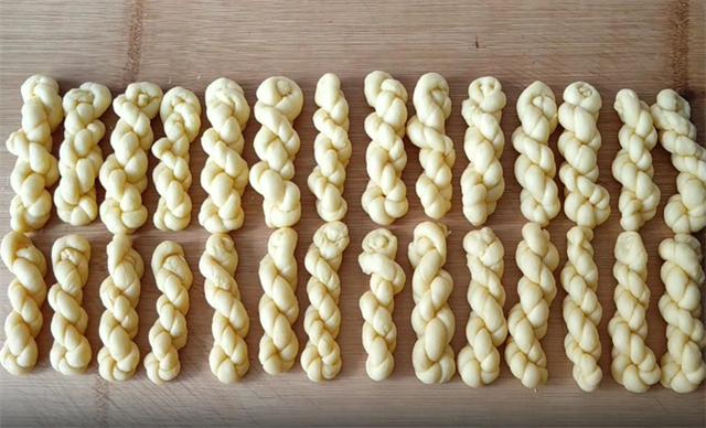 5.由于這個季節溫度比較高,我們炸先做好的麻花,因為它基本已經醒發好了。