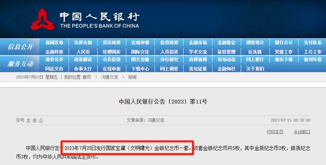 目前,央媽已經正式發布公告,紀念幣中的新系列—國家寶藏紀念幣將于7月25日正式發行!