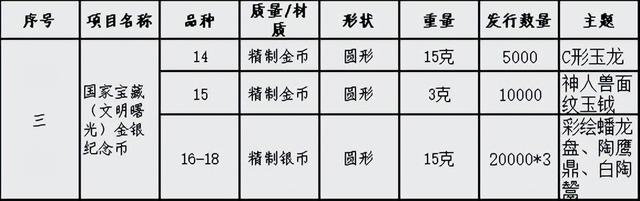 在將近一個月的空窗期后,終于又有新幣要來了! 本次發行的是新系列的龍頭幣,它在發行之前,就引起了藏友的熱議。那么這套紀念幣的具體情況如何,一起來看看吧。 龍頭幣來了根據公告信息,即將發行的是第一組國家寶藏紀念幣,它包含2枚金幣和3枚銀幣。具體規格,百科網也給大家整理好了。