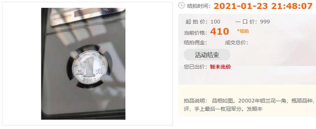而如果是絕品的高分評(píng)級(jí)幣,表現(xiàn)自然不用多說(shuō),開(kāi)頭提到的那枚NGC67分的02年蘭花1角,就拍出了410。 其他年份的鋁蘭花,也已經(jīng)不再是面值。 如果你家還有的話,可不要再花出去了! |