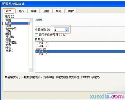3、在彈出的選框中選擇數字,數值,在小數位數中輸入自己想要的位數,例如1,然后確定。