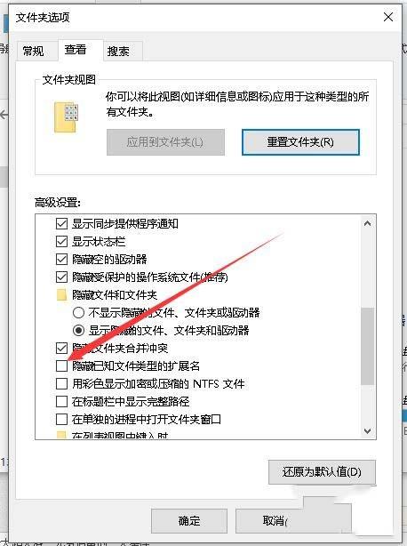 在這里,您可以修改讓其顯示或是隱藏擴展名,找到下圖所示的內容后點擊勾選或是取消即可。